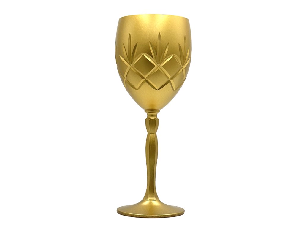 Elegantní zlatá sklenka na víno pro výjimečné příležitosti.